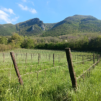 Gennaro lives in Lazio, very close to the border with Campania. Fattore Umano takes fruit from both regions. Currently the wines are produced at the winery Fra i Monti (where Gennaro is the enologist) in Lazio. He has some Pinot Noir vines in Terelle (Frosinone) right down the street from Fra i Monti. This is a wild, stunning part of Lazio essentially in the apennines so this is fruit at substantial elevation and a microclimate that yields fruit with grace and acidity, perfect for sparkling wine.
